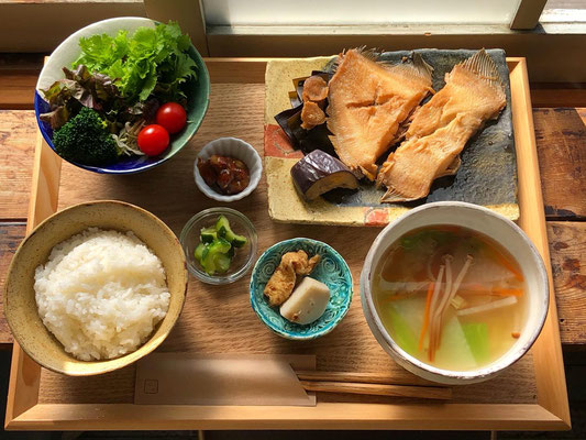 今週も工房、カフェ共に始まりました。2/6(木)〜2/9(日)のランチメニューは、下記になります。各定食に、野菜たっぷりスープ、わさび菜入りMIXサラダ、ピリ辛きゅうりの麹漬け、お惣菜が付きます。魚が人気なので、今回は、魚メニュー3本立てにしてみました。お肉が食べたい方は、お申し出いだければ、材料次第でお作りします。お気軽に。